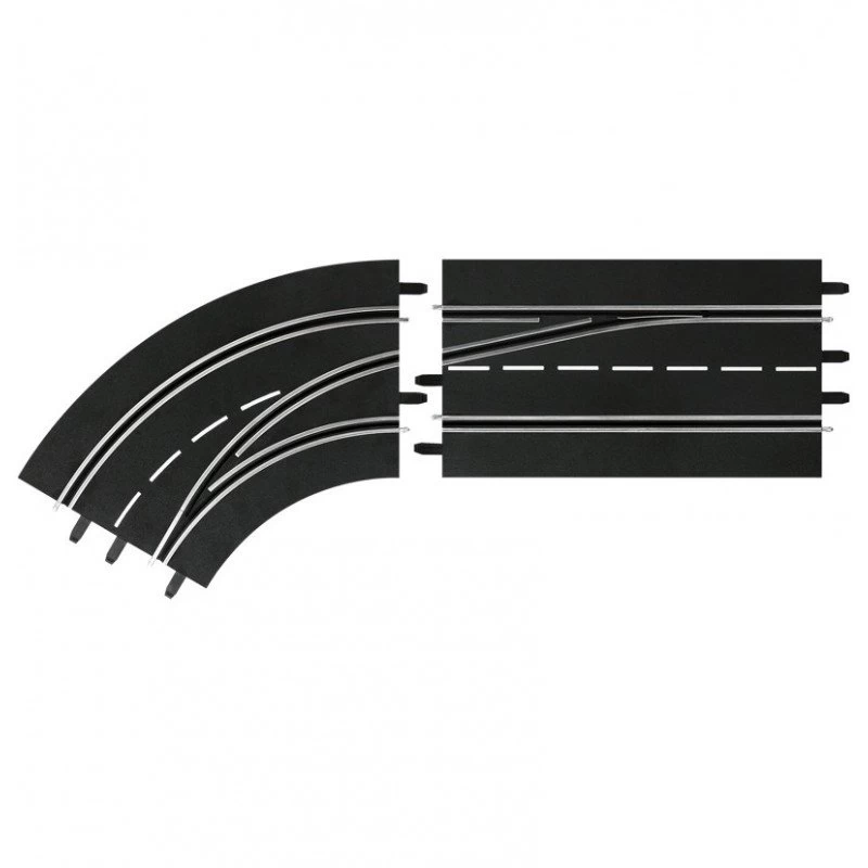 Digitale baanwissel in bocht naar links van buiten naar binnen.