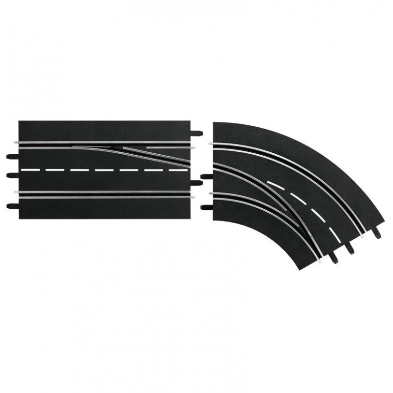 Digitale baanwissel in bocht naar rechts van buiten naar binnen.