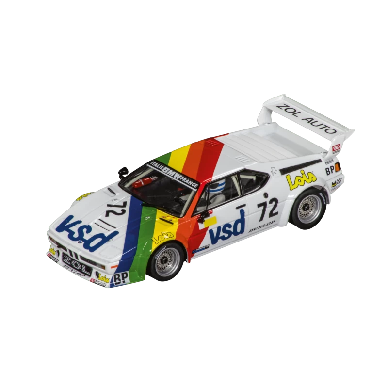Herleef de opwinding van langdurige autoraces met de Carrera DIGITAL 132 BMW M1 Procar ‘BMW Zol’Auto, No.72’ 24h, 1981 slotcar. Haal herinneringen op aan de goede oude tijd met deze beroemde raceauto. Met zijn kenmerkende vorm neemt hij je direct mee terug in de tijd. De opvallende bestickering voegt een verfrissende kleurexplosie toe en de slotcar trekt de aandacht met zijn voor-, achter- en remlichten. Met de perfect gereproduceerde iconische regenboogkleuren, dankzij de officiële BMW licentie, brengt deze Carrera auto de nostalgie tot leven.