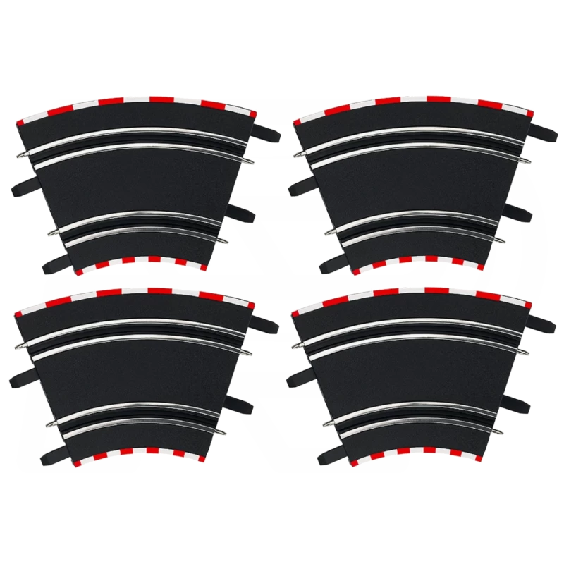 Als uitbreiding voor je Carrera Go!!! of Digital 143 racebaan. Deze mooie set van 4 korte kombochtdelen – inclusief steunen – voor het snellere bochtenwerk.