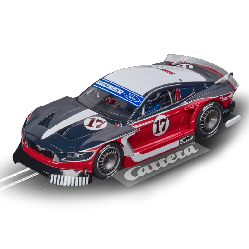 Tijdens het 55-jarig jubileum greep Ford deze kans aan om een speciale sportwagen op basis van de welbekende Ford Mustang in Europa op de markt te brengen. Carrera heeft de droomauto Ford Mustang GTY “No.17” in een rood met blauw design. Het model is door Carrera aangepast en dus geoptimaliseerd voor snelle driftactie op jouw Evolution racebaan. De brede carrosserie, verhoogde spatborden en de enorme wielen geven elke tegenstander behoorlijk wat indruk. Is deze speciale auto ook binnenkort van jou?