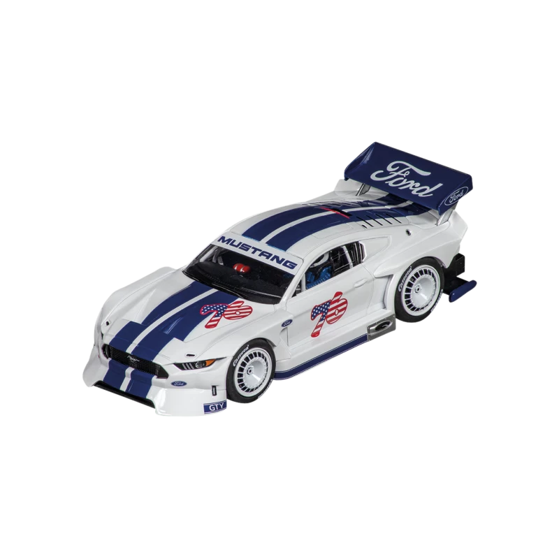 De Ford Mustang GTY ‘No.76’ raast met volle snelheid over het Carrera DIGITAL 132-racecircuit. Deze populaire sportauto van Ford wordt sinds 1964 gebouwd door de Amerikaanse Ford Motor Company en is sindsdien uitgegroeid tot een favoriet onder enthousiastelingen. De GTY is uitgerust met een indrukwekkende 5-liter V8-motor met een vermogen tot wel 710 pk, waardoor het een echt beest is op het circuit. Het droomexemplaar Ford Mustang GTY met nummer 76 is nu ook verkrijgbaar in het Carrera assortiment.