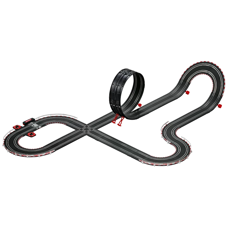- Een racebaan met looping, fly-over en analoge rondeteller.