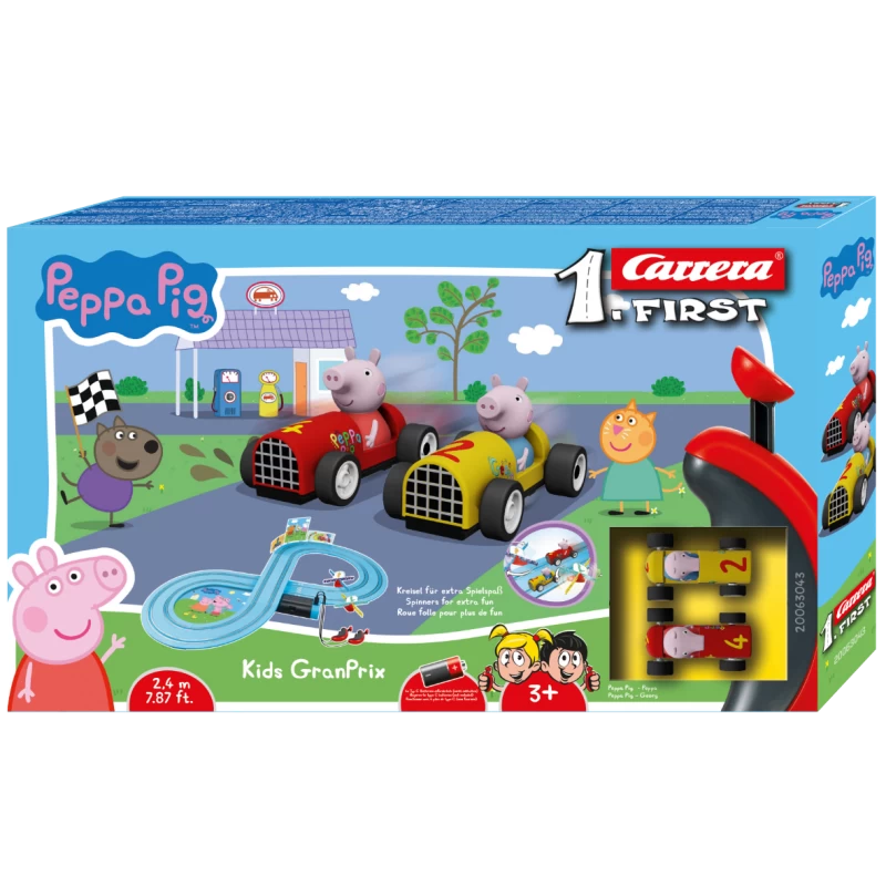 De nieuwe Carrera FIRST ‘Peppa Pig – Kids GranPrix’ set staat garant voor veel plezier met Peppa Pig en haar kleine broertje George. Deze baan is 2,4 meter lang en is uitermate geschikt voor kinderen van 3 t/m 5 jaar.