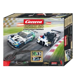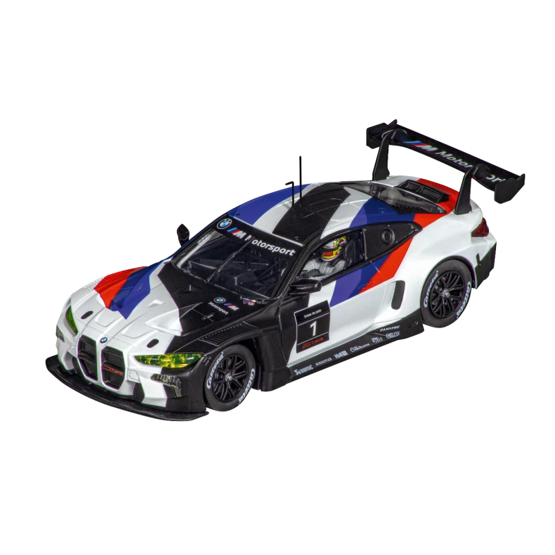 In de Carrera Digital 124 “Start your Engines”-set maakt de snelle BMW M4 GT3 zijn vol gas debuut in twee coole varianten! De BMW M4 GT3 is het nieuwste topmodel van de Beierse autofabrikant. Met zijn opvallende voorkant was de BMW M4 GT3 “BMW M Motorsport, No.1” in een strak zwart-wit design met blauwe en rode accenten in 2021 bij verschillende races in echt testgebruik. Maar de coole BMW M4 GT3 is ook al vertegenwoordigd in de wereld van steeds populairder wordende virtuele e-simraces: een prominent voorbeeld is de deelname aan de Digital NĂ¼rburgring Endurance Series, waar vier M4-auto’s zich in de top vier wisten te vestigen.